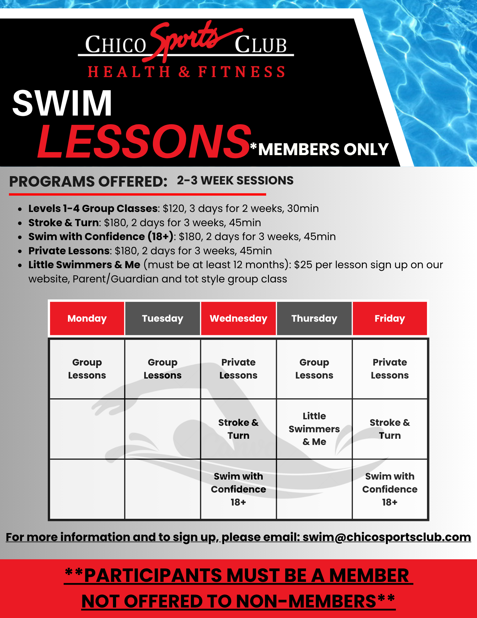 SWIM LESSONS AT CHICO SPORTS CLUB